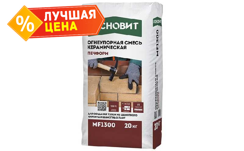 Печная смесь кладочная ПЕЧФОРМ МF1300 изготовлена на основе керамического связующего, песка, модифицирующих добавок.
